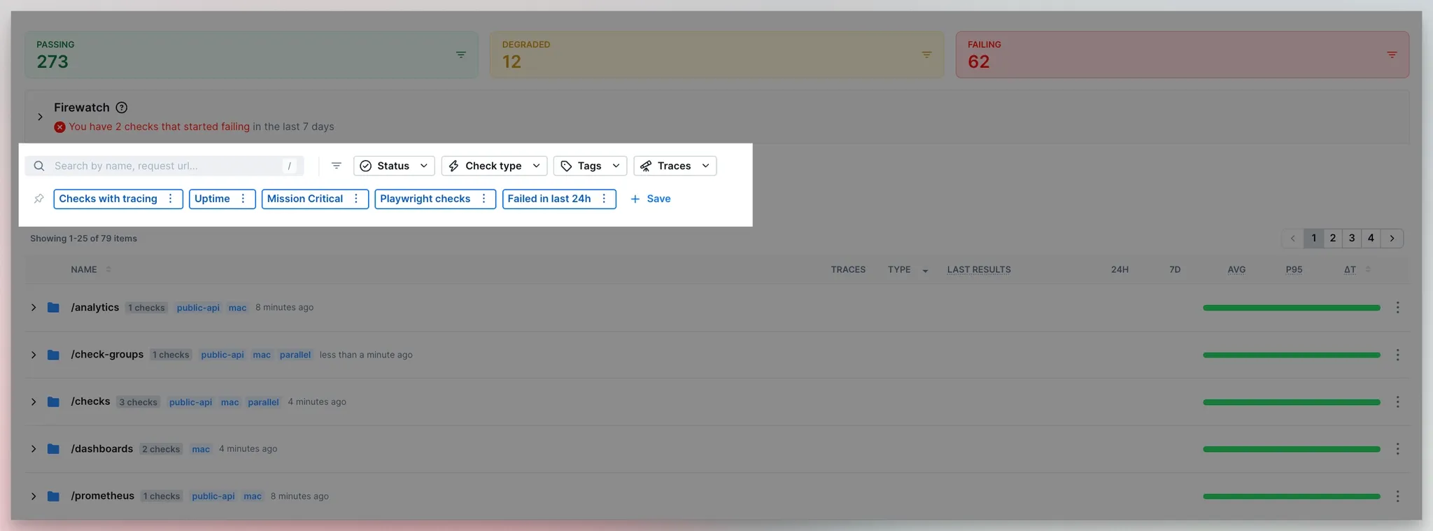 Dashboard charts now display data based on the selected time range, so all checks on a dashboard share the same timeline. This makes it easier to compare results and understand what happened across your services.