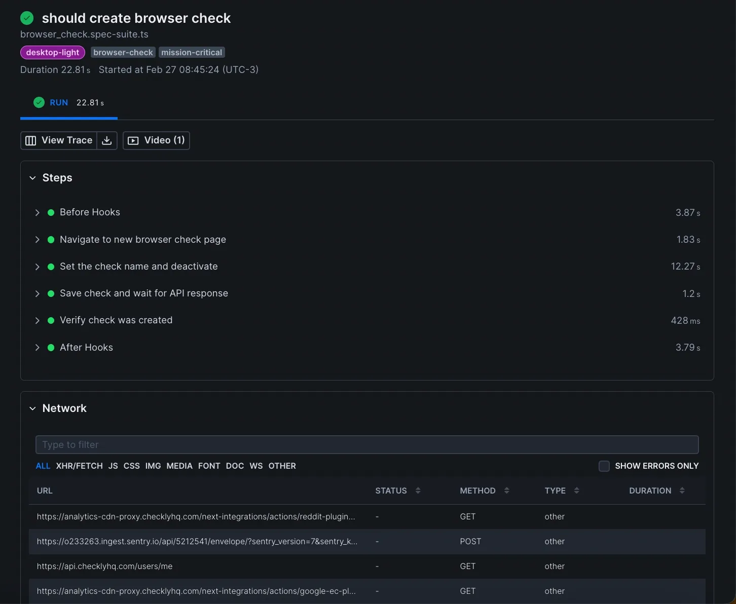 These improvements are powered by our Checkly Playwright Reporter, which now runs for Playwright Check Suites executed in Checkly’s cloud.