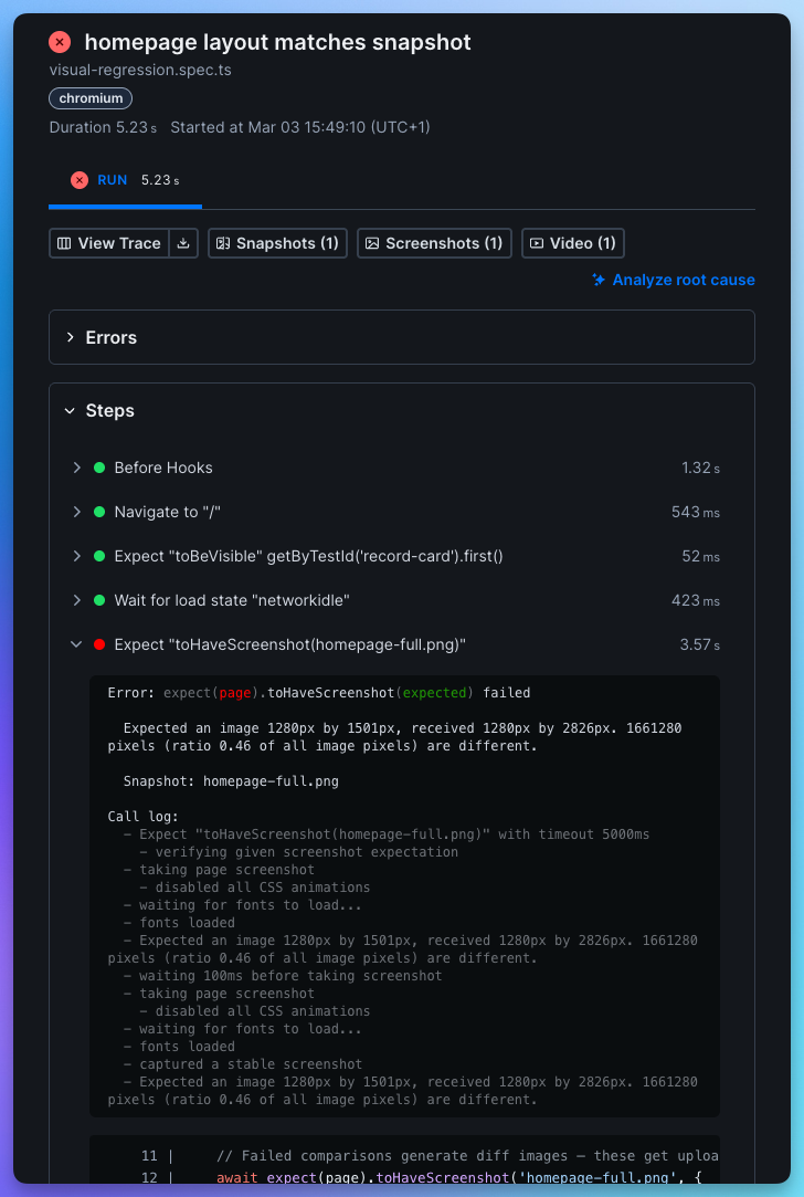 TSX and JSX support: Playwright checks now support .tsx and .jsx files, so you can use React-style syntax directly in your Playwright Check Suites.