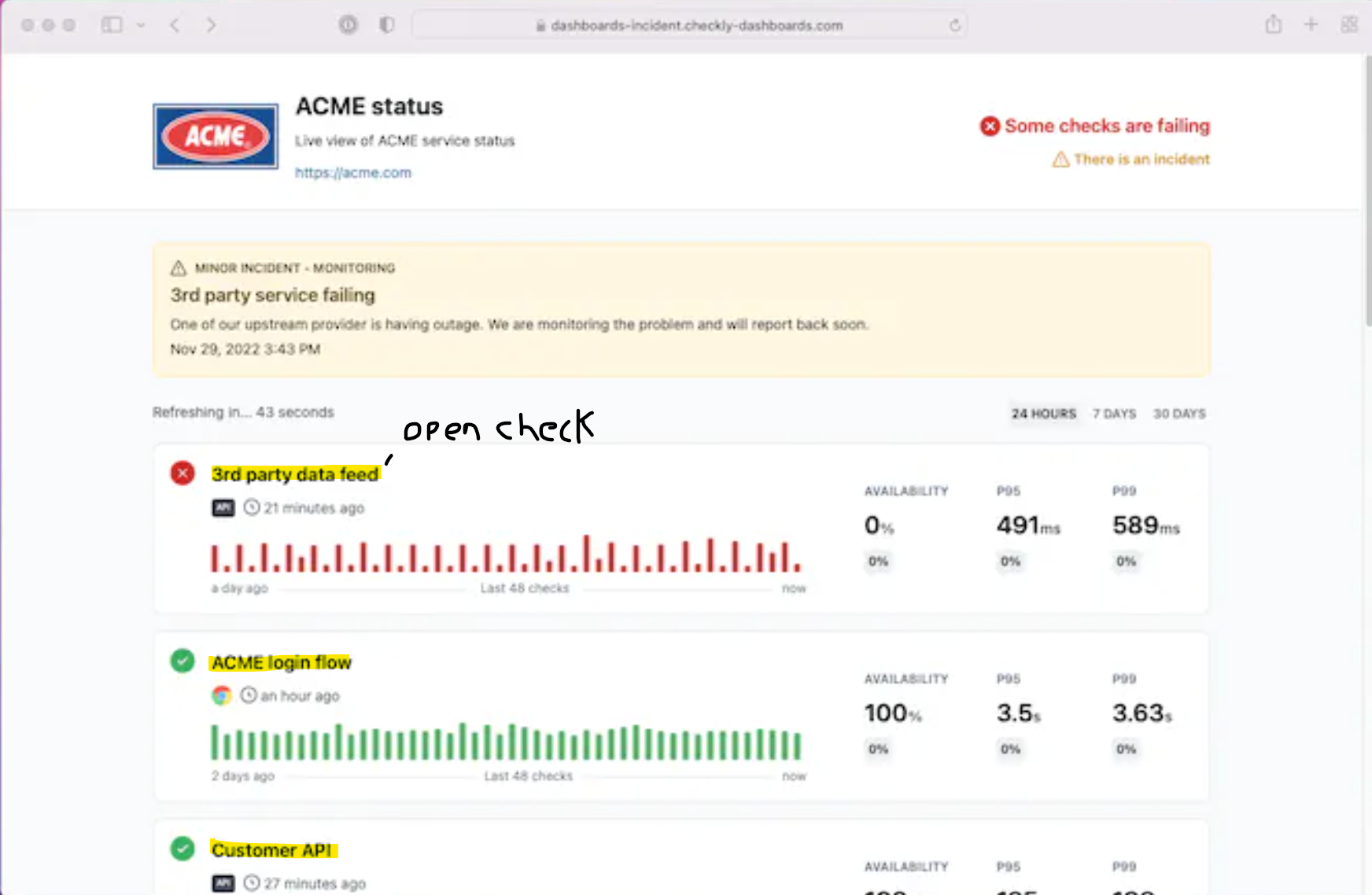 In the dashboard is currently no navigation option to the checks.